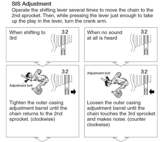 - Follow the procedures below to adjust the rear derailleur: